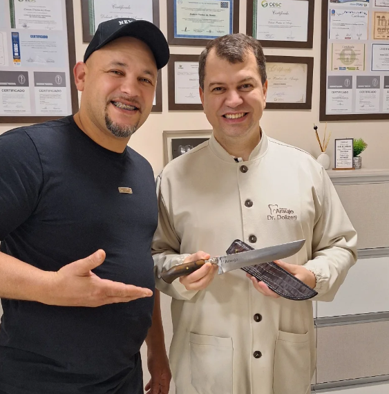 FACA LÍNGUA DE CHIMANGO FORJADA EM AÇO SAE5160 CABO EM CHIFRE DE CERVO TORNEADO ACABAMENTO EM INOX [PEÇA ÚNICA]