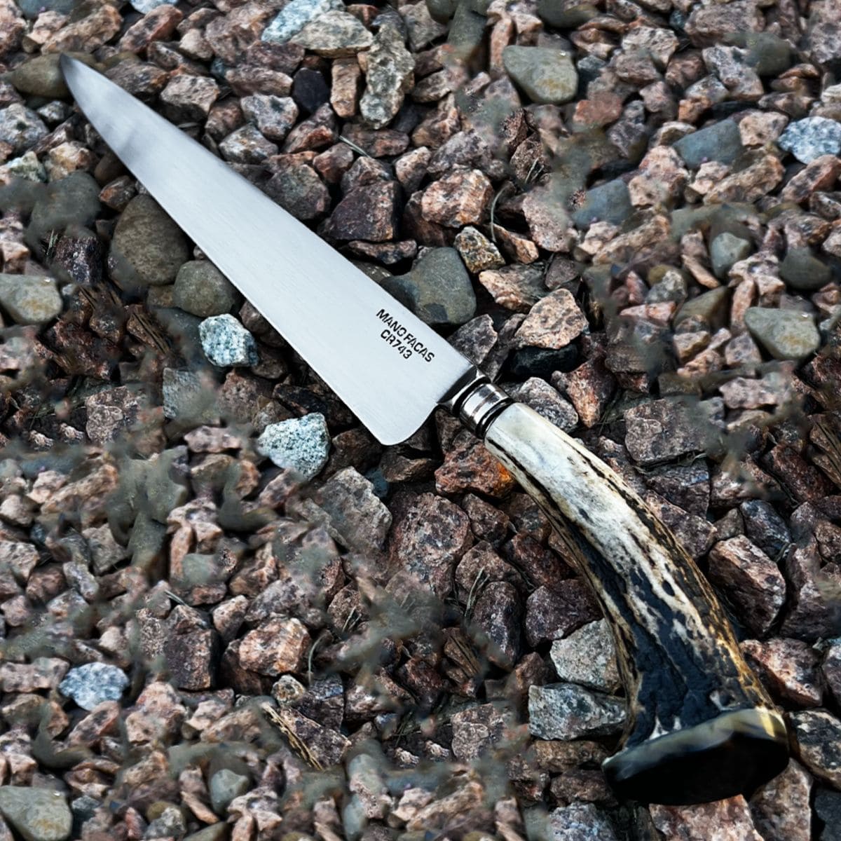 FACA LÍNGUA DE CHIMANGO FORJADA EM AÇO SAE5160 CHIFRE DE CERVO COM ACABAMENTO CASCO DE CAVALO[PEÇA ÚNICA]